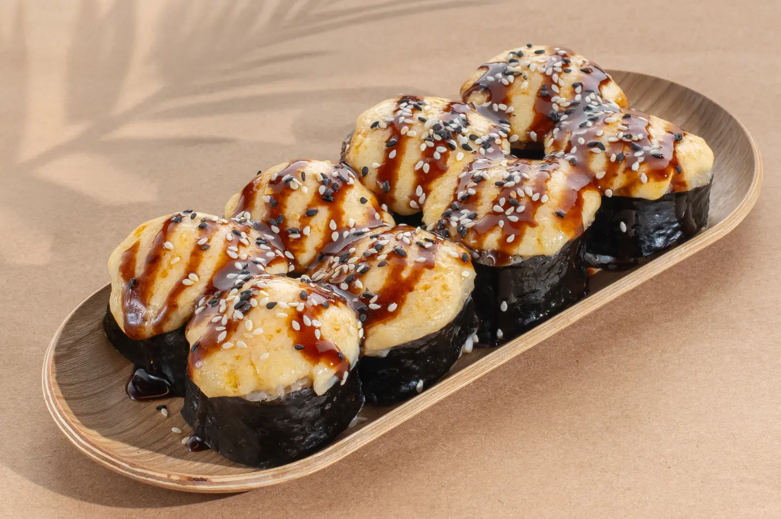 Ingredients: chicken, cream cheese, cucumber, bell pepper, mayo, sriracha, teriyaki, cheddar, sesame.