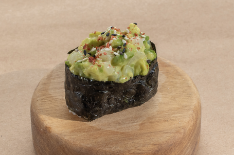 Gunkan Avocado Tuna Weight: 40 grams. Ingredients: tuna, avocado, spicy sauce, sesame, sesame oil. Soy sauce, wasabi and ginger are bought separately. Price 250 RSD Add to cart