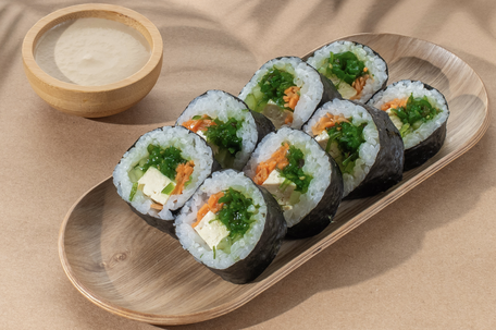 Yokohama Weight: 250 grams.Ingredients: salmon, cream cheese, cucumber.Dish comes with a free serving of soy sauce, wasabi and ginger. Nutritional valueper 100 g 167kcal 7,2 gproteins 6,3 gfats 20,3 gcarbs per portion 422kcal 18,1 gproteins 16 gfats 51,2 gcarbs per piece 53kcal 2,3 gproteins 2 gfats 6,4 gcarbs Price 790 RSD Add to cart