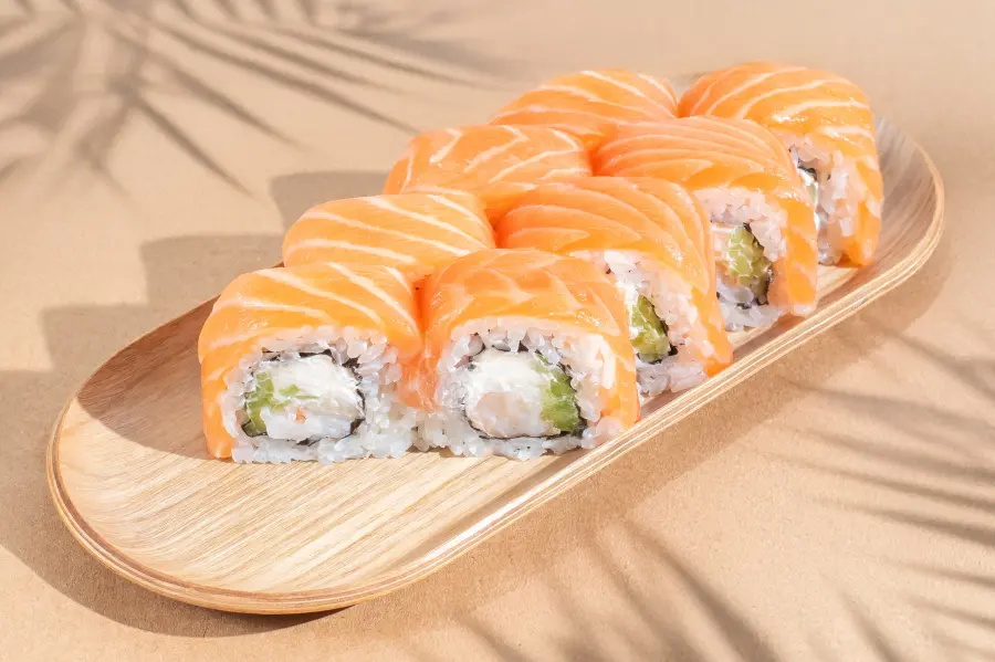 Ingredients: salmon, shrimp, cream cheese, cucumber.