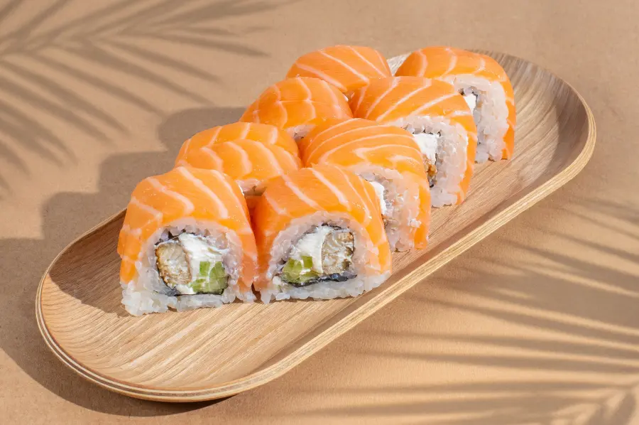 Ingredients: salmon, cream cheese, cucumber, unagi.