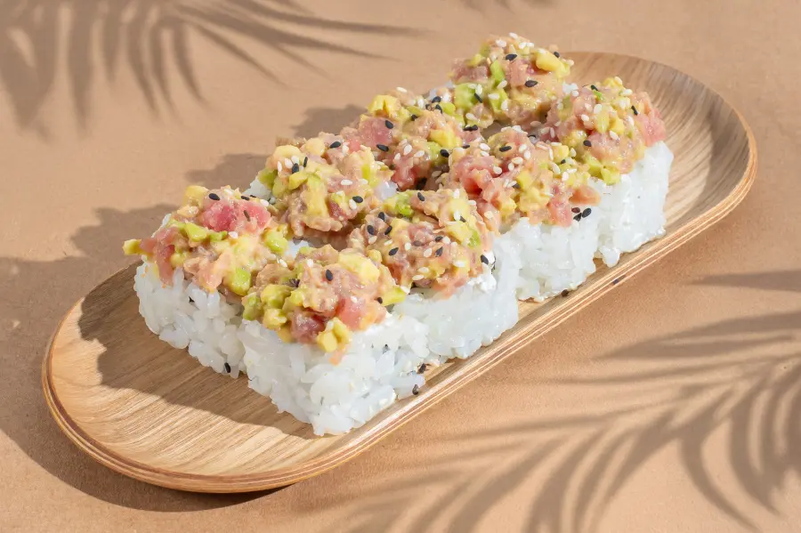 Ingredients: tuna, avocado, spicy sauce, cream cheese, cucumber, sesame.